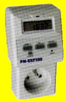 PM-EXF100 199.00 ff---regroupe en lui seul 7 appareils---mesure de consommation d'énergie ---coût d'exploitation même jour/nuit --- mesure de tension --- mesure de puissance réelle --- une mémoire permet de lire la consommation en Kwt/heure et la durée d'enregistrement-- prise et socle bipolaire + terre 10/16 A avec protection enfants ---- mesure de 60mA à 16A mémorise la conso jusqu'à 999.9Kwh . 45hz à 65 hz |